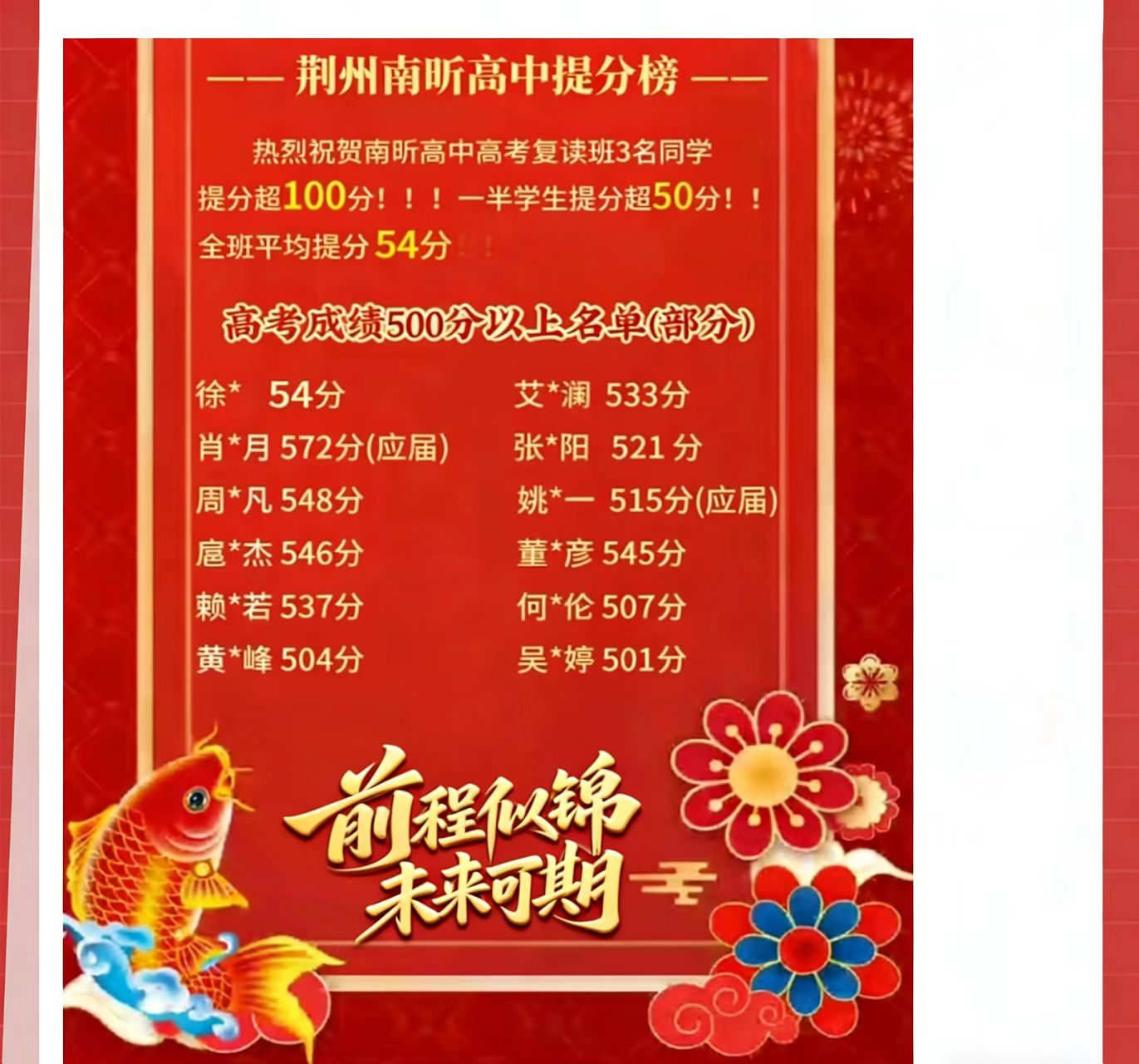 荆州市南昕高中2024复读班高考大捷