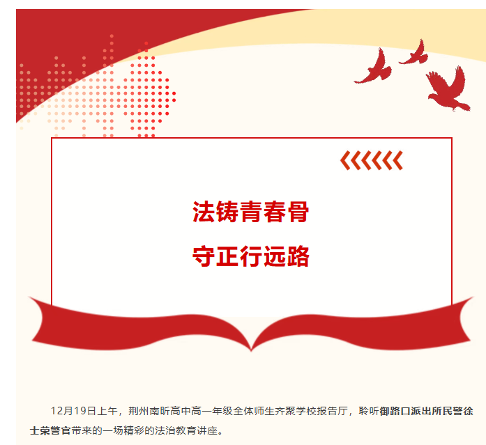 【法铸青春骨 守正行远路】校园安全主题讲座