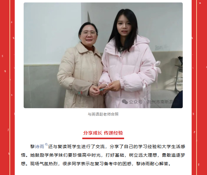 南昕高中2025届优秀毕业生黎诗雨同学返回母校看望恩师