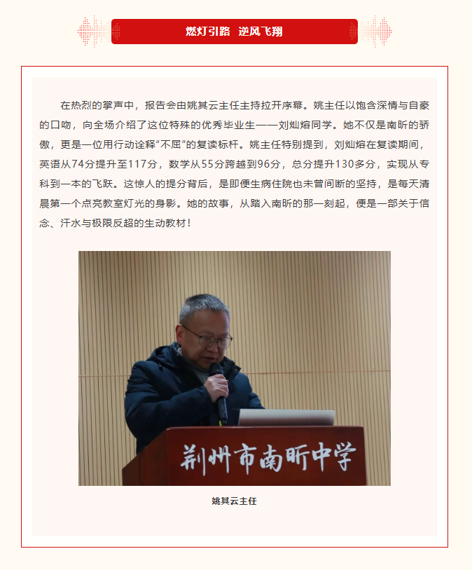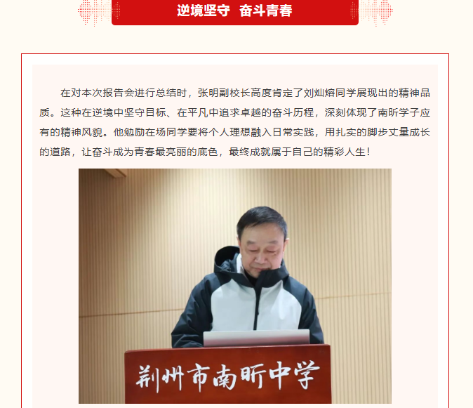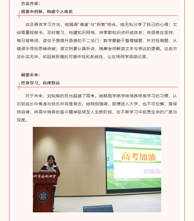 南昕高中优秀毕业生刘灿熔励志报告会圆满举行