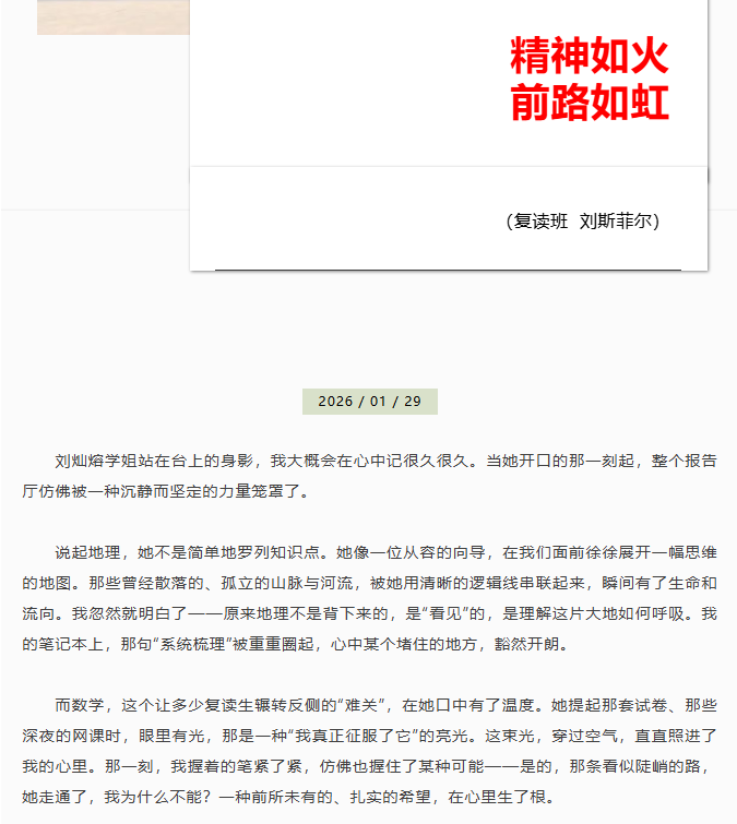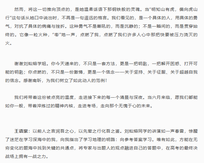 南昕高中优秀毕业生刘灿熔励志报告会圆满举行