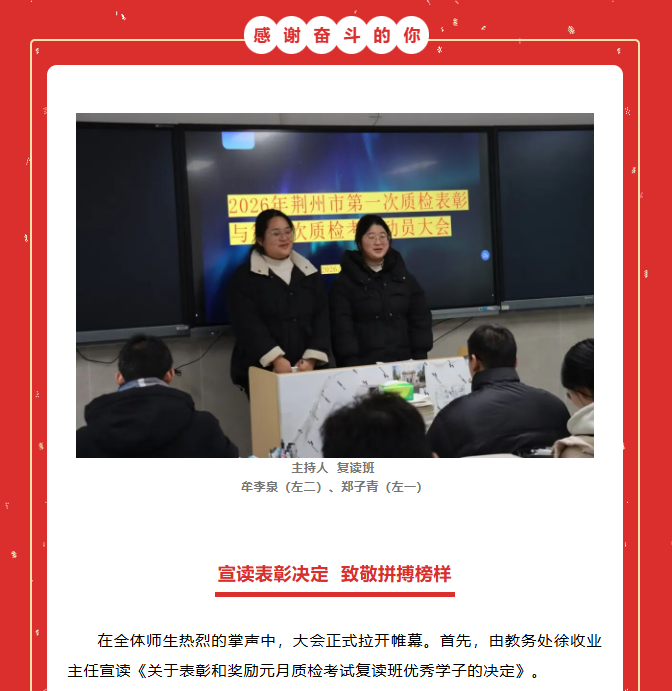 南昕高中复读班质检表彰暨二检动员大会