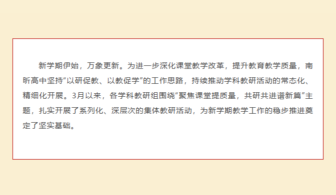 【聚焦课堂提质量 共研共进谱新篇】 南昕高中3月集