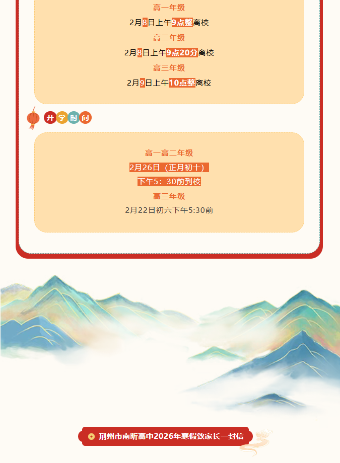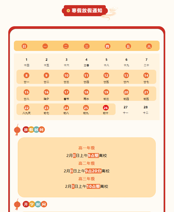 南昕高中寒假通知及温馨提示